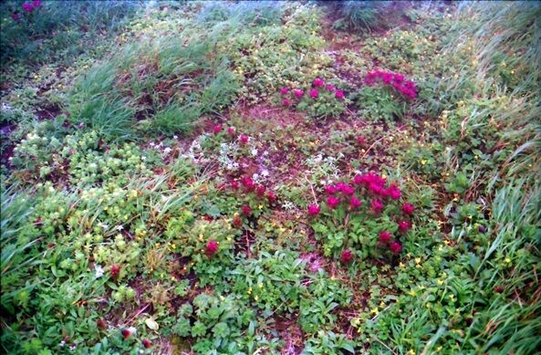 高山植物の名前はもう判別できないほど多く、ガイドブックはもう役に立たない。