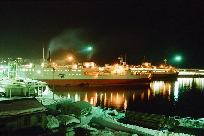 雪のちらつく青函連絡船の終末を、函館への最終回航便の離岸まで楽しめた。