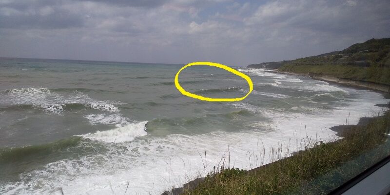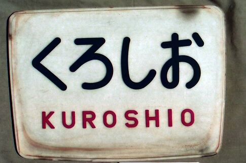 白地に紺色のひらがなの「くろしお」、赤色のローマ字で「KUROSHIO」が表示されます、