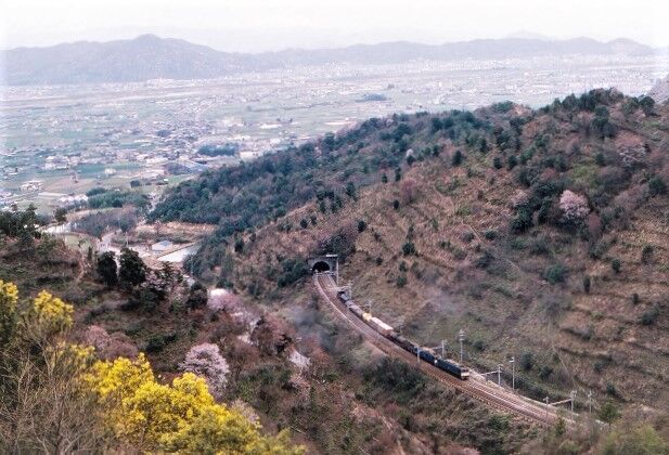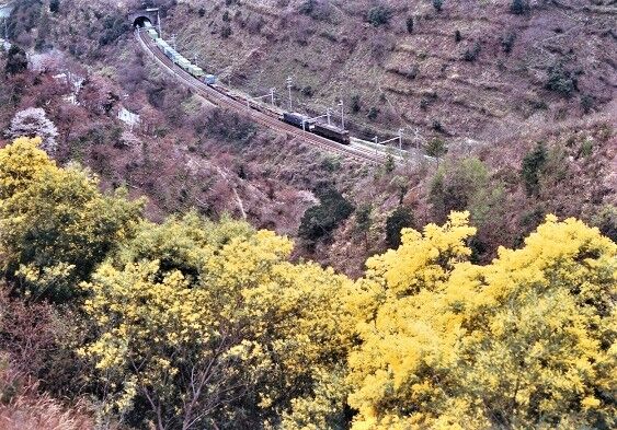 👇岩代~切目間 2358M 227系 ほぼ順光・・まもなく下を通過する