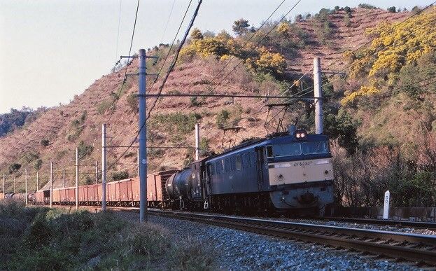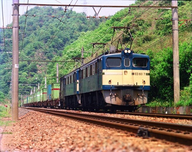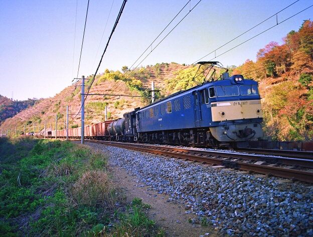 👇岩代~切目間 2358M 227系 後追い撮影、逆光、+2くらいの補正