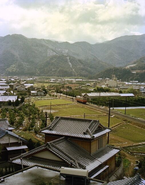 👇下佐々~龍光寺前 モハ32+31 左端の生石山は雲の中