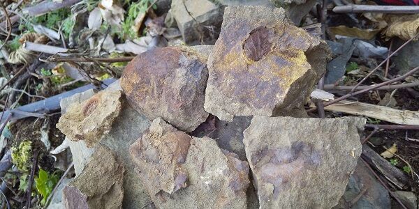 今回は先の採集者が崩した安全な崖ので採集、ほとんど転がっている石を割り採集、