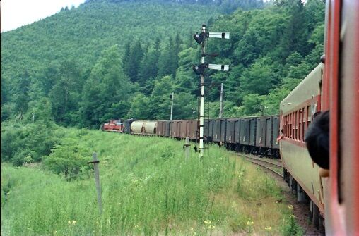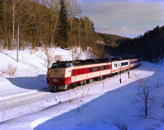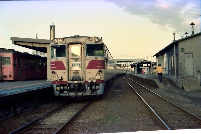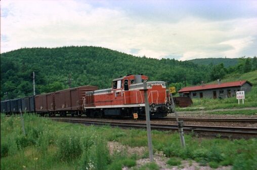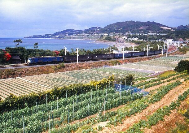 👇南部~岩代 124レEF58 昭和54年 (機関車前頭部左に天神社が見える)