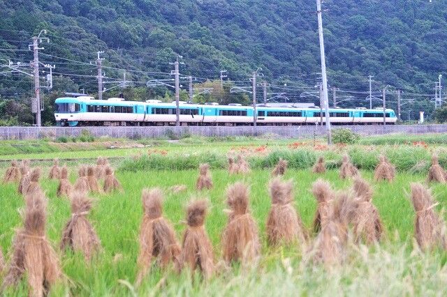 👇印南~稲原間 17:25 通行人と両列車の頭合わせで撮影(かぶり)