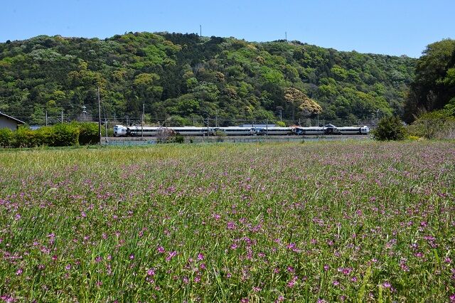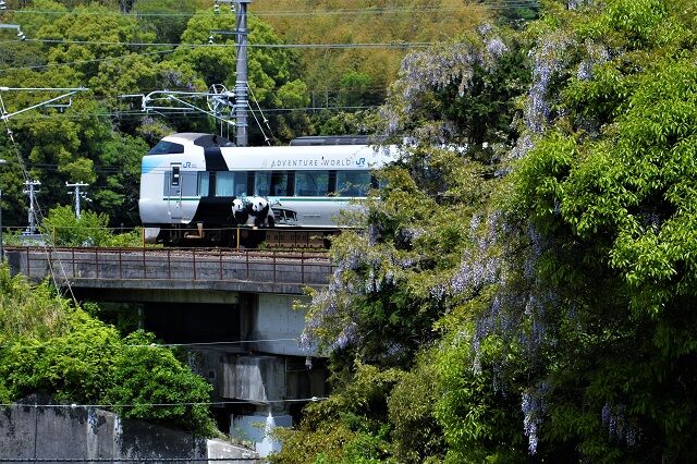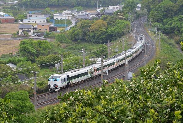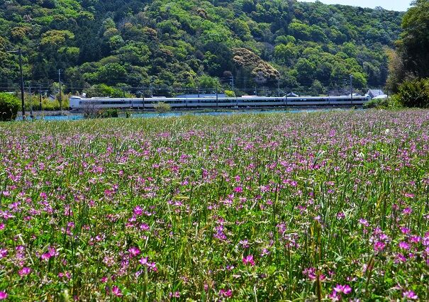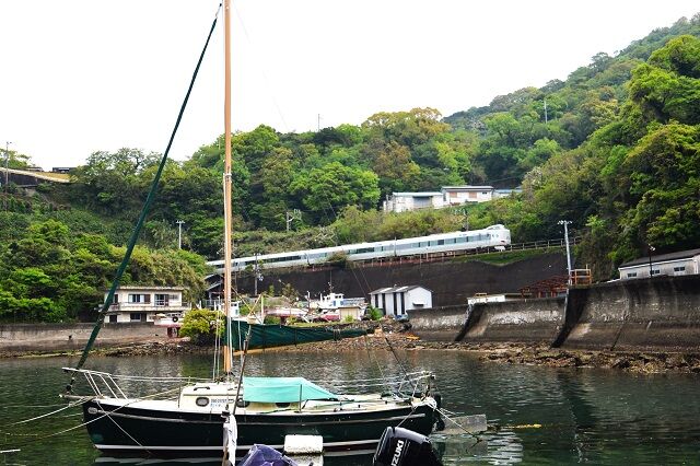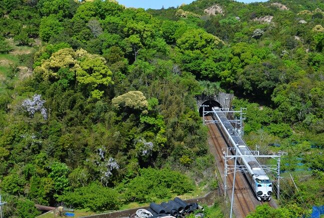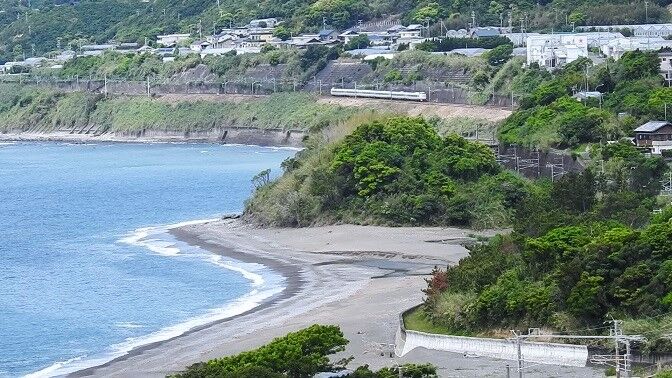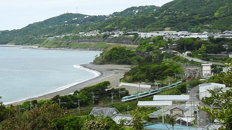 1枚目の写真で分かるように、岩代の結び松下の海側の特急列車の速度低下区間の一部、