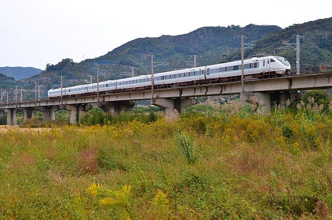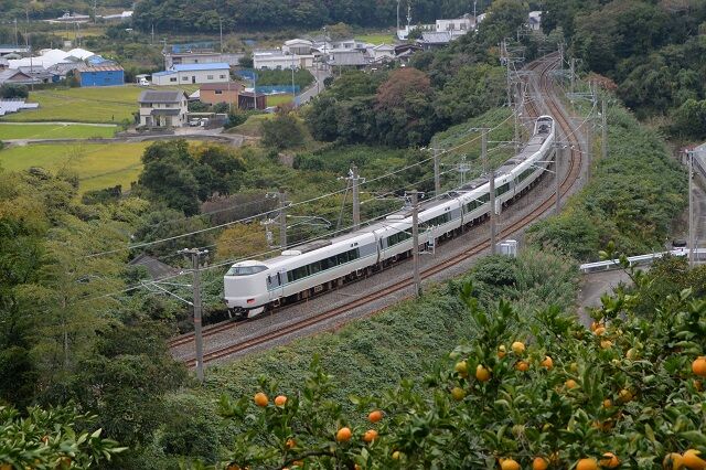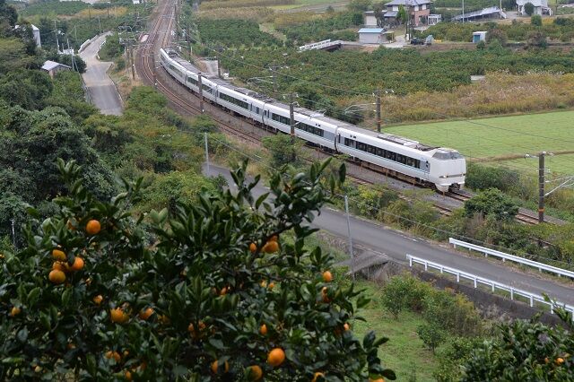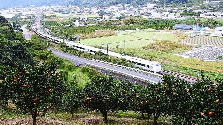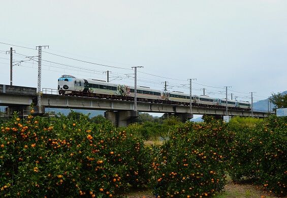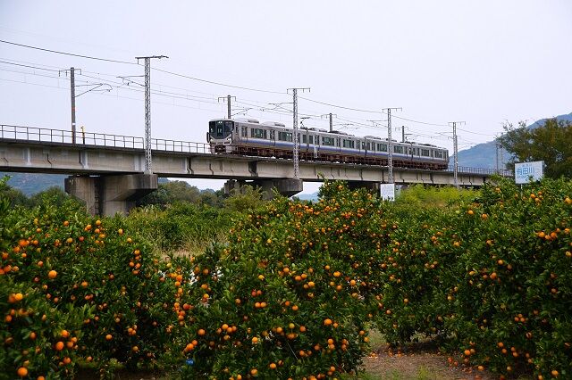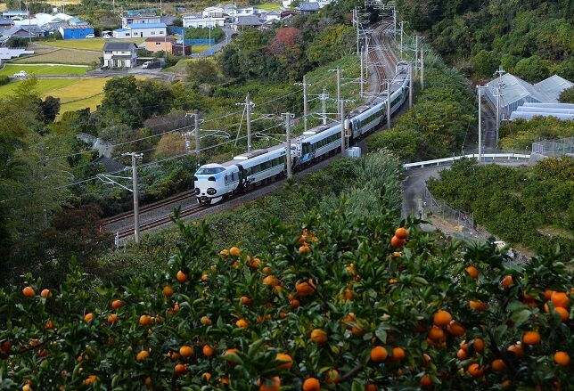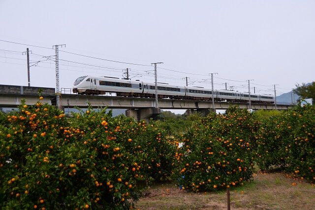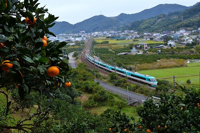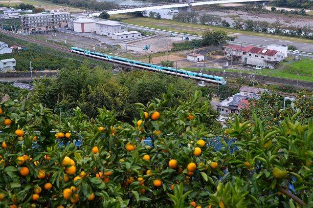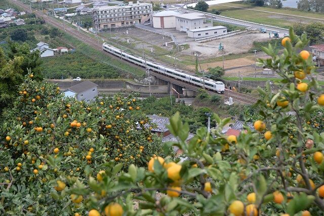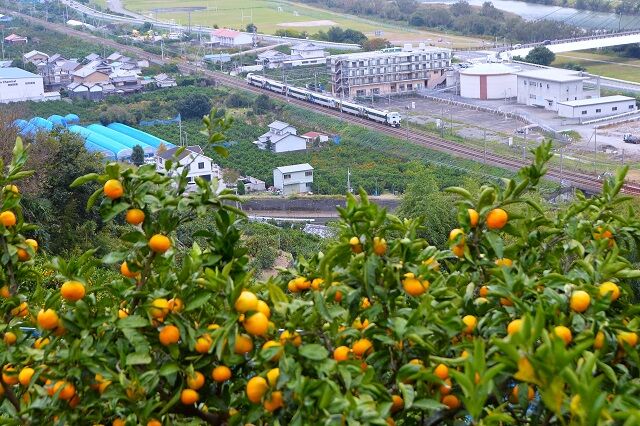 手前のミカン畑と列車の明暗比が大きく、みかんの負けで潰れた写真になってしまう。