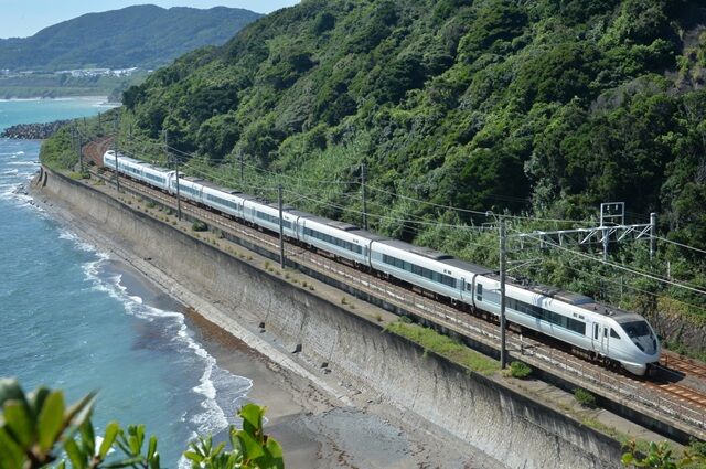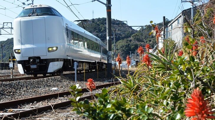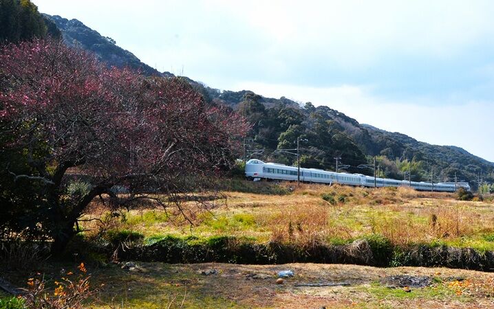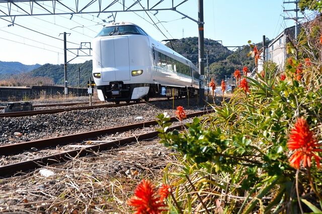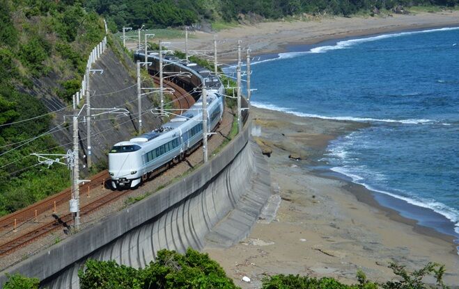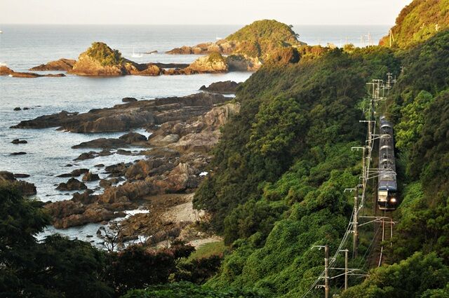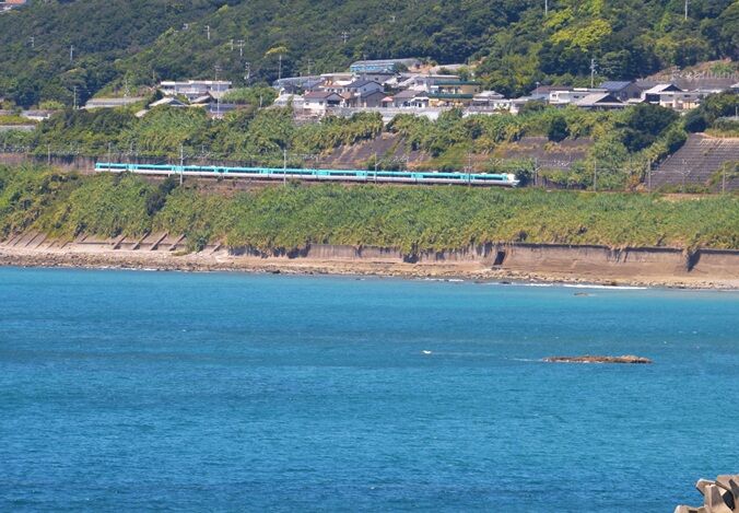 国道42号線の休憩所付近の地蔵さん横に、海岸線を行く列車が見える場所が2か所、