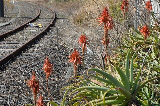 こちらからは俯瞰といえど横位置に近い、休憩所横の擁壁の上部に登ると線路が見える、