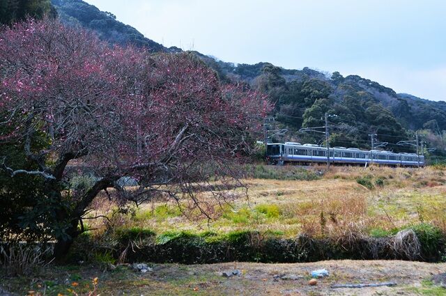 紀伊日置といえば日置川橋梁付近が撮影名所だが、両岸の堰堤や高架橋からの撮影、