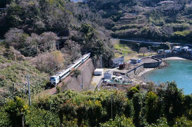 塩津の尾根筋の旧道沿いに植えられた桜、3/15にここで梅の花と列車を撮影した時は、