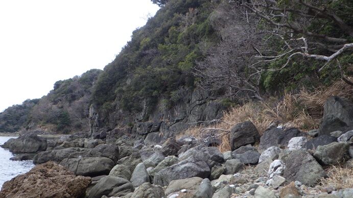 青色泥岩の大岩をばらばらにして自採集しましたが、中からは飴色の二枚貝が1枚でした。