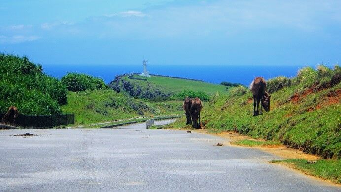 西崎で台湾は曇天で見えず残念でした、与那国でDrコトーロケ地巡りで外せない場所、